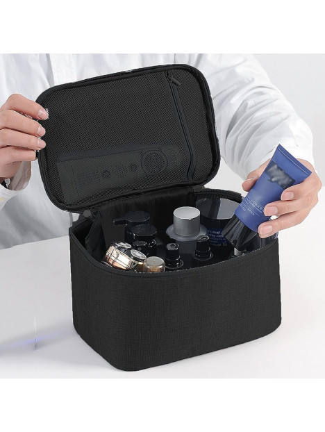Wewnętrzne przegródki i kieszonki pozwalają na uporządkowanie produktów, a wygodny dostęp do nich jest zapewniony dzięki przemyślanej konstrukcji. Kuferek ten jest idealnym rozwiązaniem dla mężczyzn, którzy cenią sobie szybki i łatwy dostęp do swoich kosmetyków.