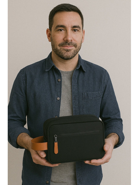 Czarna kosmetyczka podróżna z brązowymi detalami to połączenie klasyki i nowoczesności, które idealnie wpisuje się w gusta osób ceniących minimalistyczny styl. Jej stonowana kolorystyka i subtelne brązowe akcenty, takie jak uchwyty czy wstawki, nadają jej eleganckiego charakteru. To uniwersalne rozwiązanie dla kobiet i mężczyzn, które świetnie sprawdzi się zarówno w domowej łazience, jak i podczas podróży.